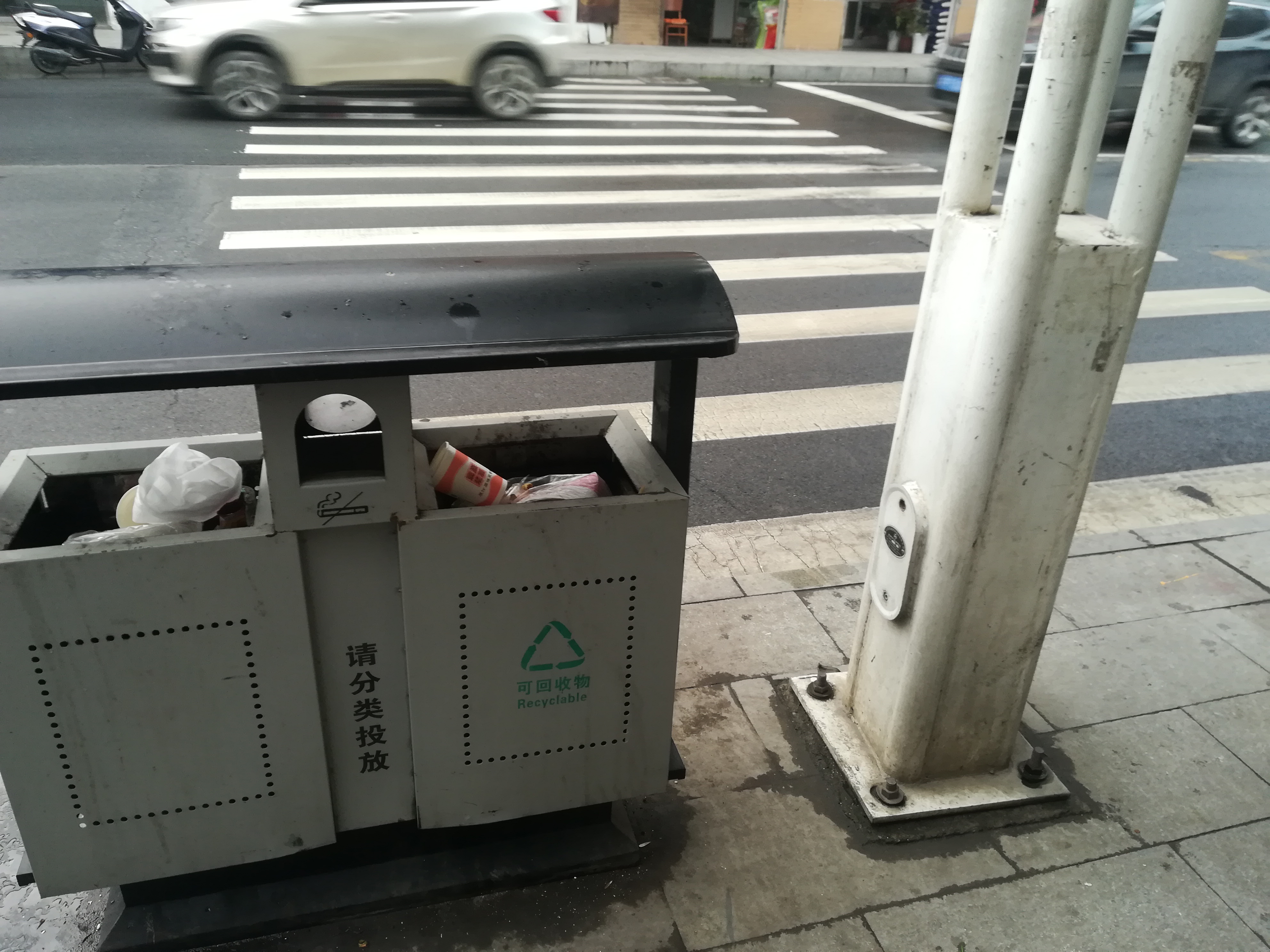 过往斑马线市民反应,原种子公司至大世界婚纱摄影路口,斑马线路口有垃圾桶、路灯电线杆、玻璃橱窗广告牌,全部设立在斑马线路口,使得过往斑马线的行人很不方便,选择绕开斑马线走机动车道。建议将设立此处的垃圾桶和玻璃橱窗转移位置。