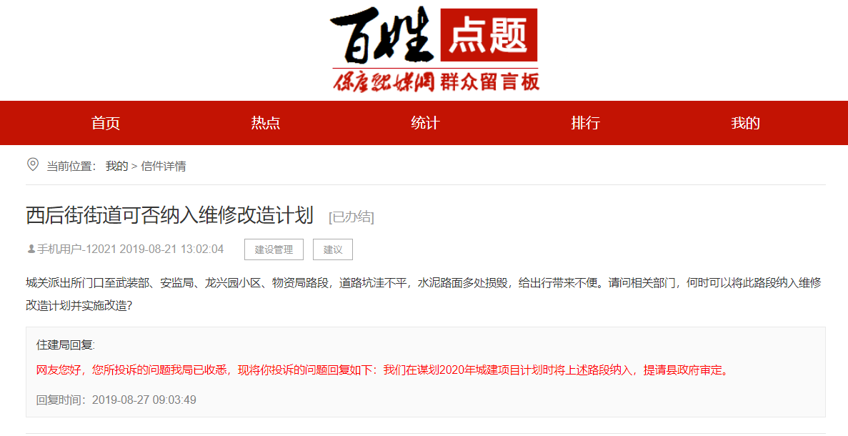 住建局回复: