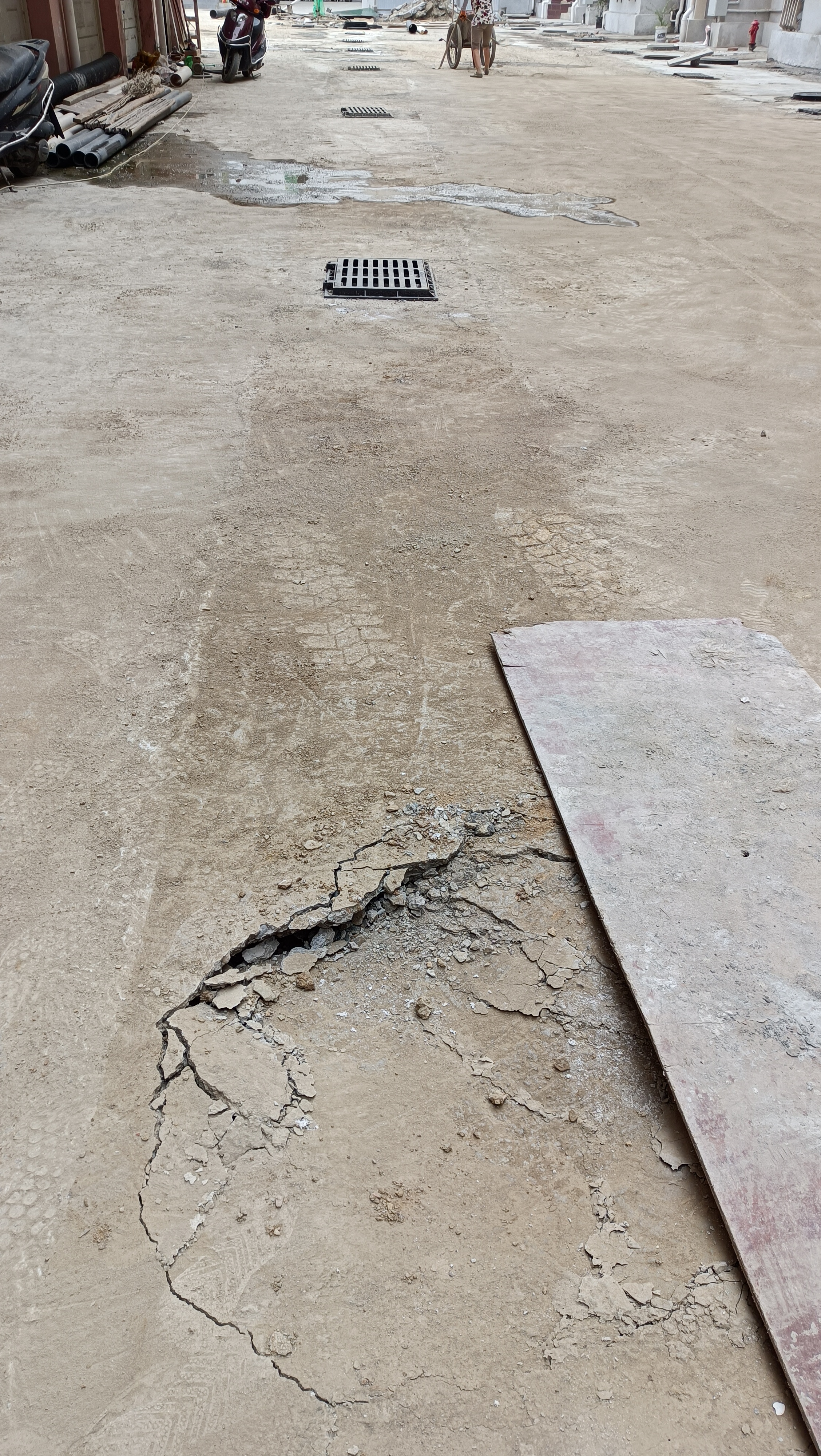 网友您好,您所投诉的问题我局已收悉,现将您投诉的问题回复如下:接待该群众反映后,我局安排专人汇同监理公司、商务局工作人员,经现场查验,一是因为混凝土保养期未到,二是回填土未压实,经过车碾压后出现破裂情况。已经督促施工单位整改到位,感谢小区居民参与监督。