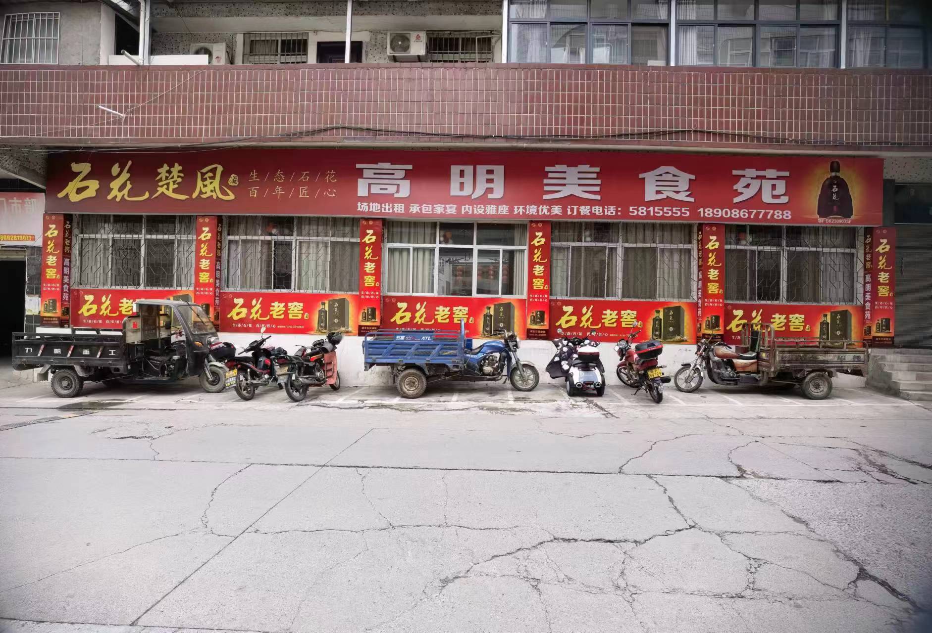 粮油公司旁高明美食府门口,本来规划的是摩托车停车位,能停16个摩托车,现在被3个三轮车长期停在哪里?最多还能停4个摩托车,请处理。