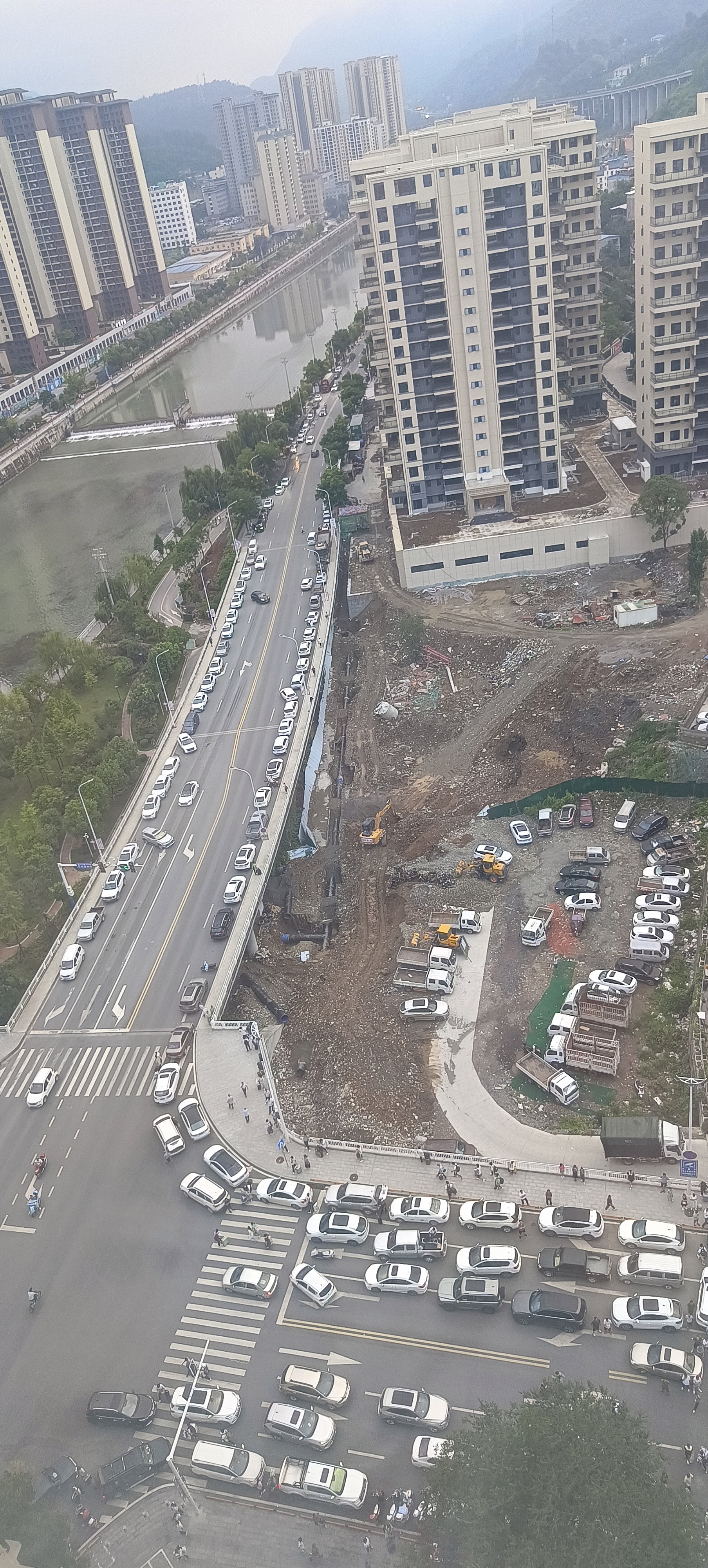 保康一中门口位于紫薇大桥头十字路口,每逢周末或节假日,早晨和晚上部分走读学生上学或放学时间,接送学生车辆无法停靠,造成该路段堵车,严重影响凤凰新城1期入住和周围市民出行,建议将桥头空地建设停车场,解决市民和学生家长停车难问题。