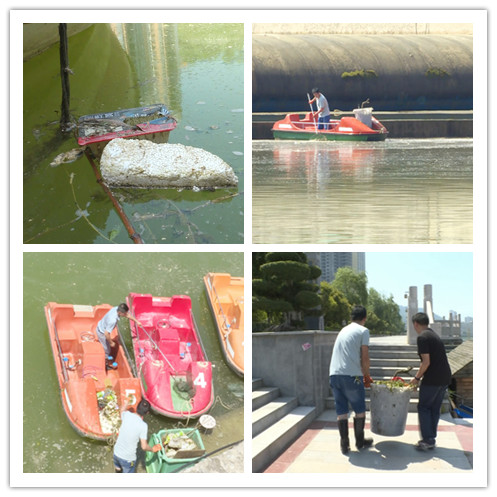 随后,本中心记者赶到清溪河边,看到河面上漂浮着的饮料瓶、垃圾袋等生活垃圾正随风移动。此时,县堤防管理站正组织工作人员对河面的垃圾进行清理和打捞。