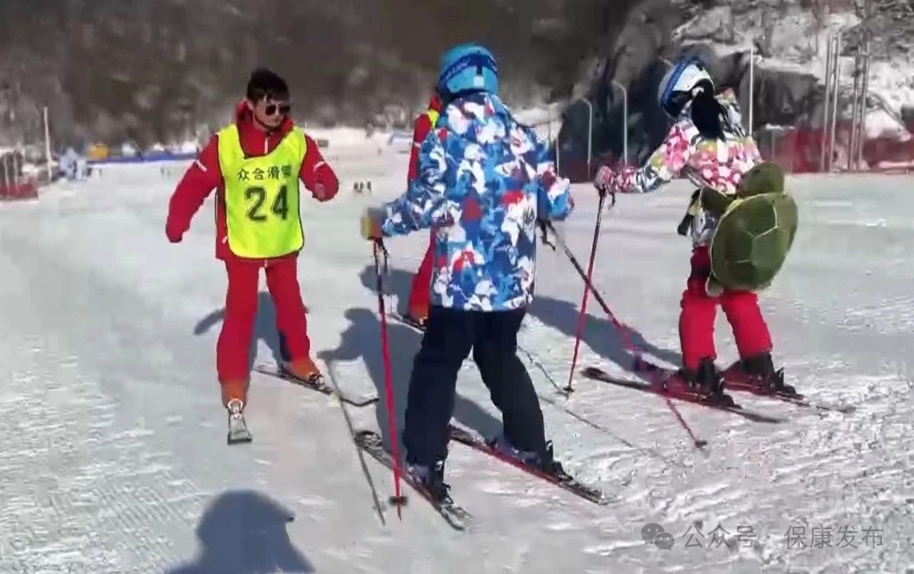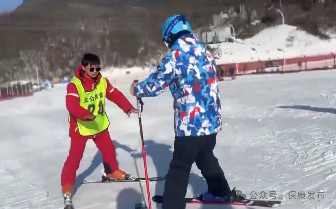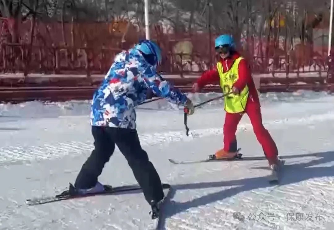 用怎样的姿势滑雪?腿部如何发力?每个环节,孙昭都耐心地讲解,手把手带游客练习,尽管天气寒冷,但因为一直在运动,经常会热得出汗。