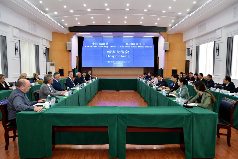 10月13日,保康县与德国格莱茨县考察交流团进行座谈交流并成功举办建立友好关系签约仪式。县委副书记、县长杜云峰,格莱茨县县长乌利・舍夫尔,襄阳市人民政府外事办主任史素珍出席座谈会及签约仪式并讲话。