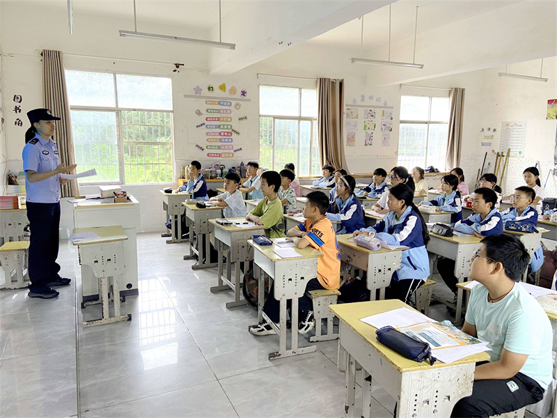 “虽然同学们都是未成年人,但是触犯法律,一样要受到惩罚,还可能留下终身污点,影响未来考学、工作。”趁着热烈的氛围,周警官顺势引出防校园欺凌、群殴打架等违法行为的危害,以及未成年人犯罪的成因,并讲授了遇险自救等方面的安全常识,要求同学们学法、守法,运用法律武器保护自己。