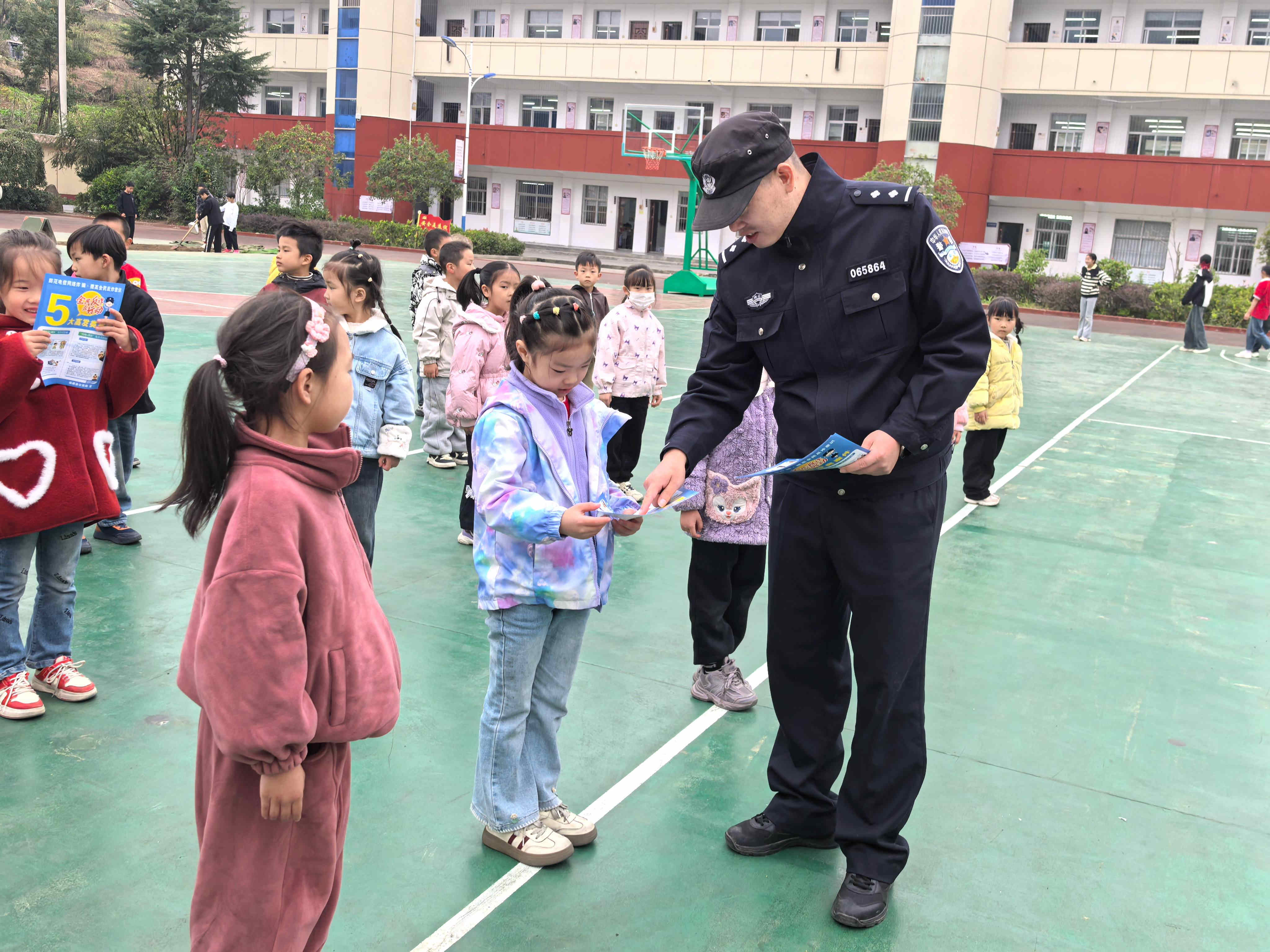 培训结束后,恰逢学生体育课时间,民警走进操场,化身“安全讲师”,为孩子们带来一堂生动有趣的安防知识课。