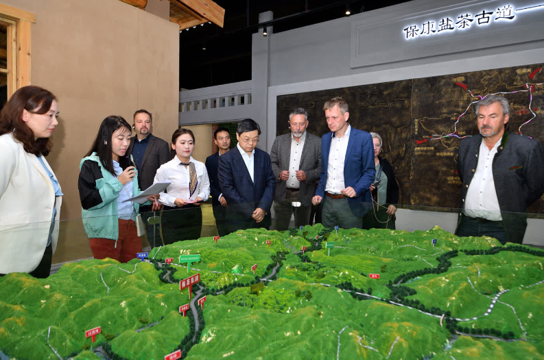 在保茶集团,乌利•舍尔夫一行实地观摩了智能化茶叶加工生产线,了解保康茶产业发展情况,观看茶艺展示以及太极拳展演,深入体验中华传统文化。保康茶叶高香持久、滋味纯正、汤色亮绿的特点给考察交流团留下了深刻的印象。乌利•舍尔夫表示,保康县秀美的自然风光、优质的医疗资源以及深厚的文化底蕴让我们不虚此行,两座城市虽山水相隔,但友谊的纽带让彼此相连,希望双方能以本次访问为新的起点,开展更加务实、深入的合作。