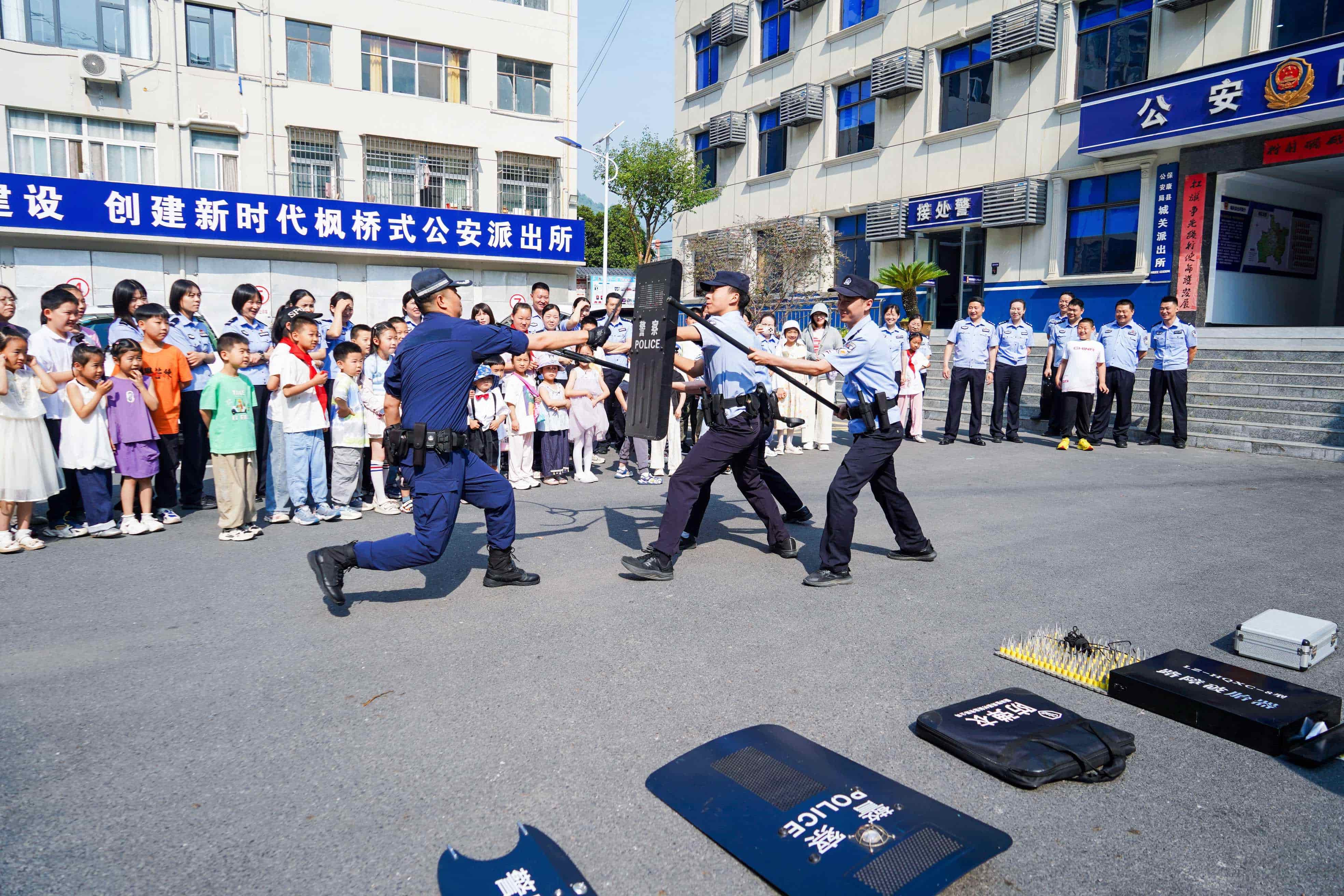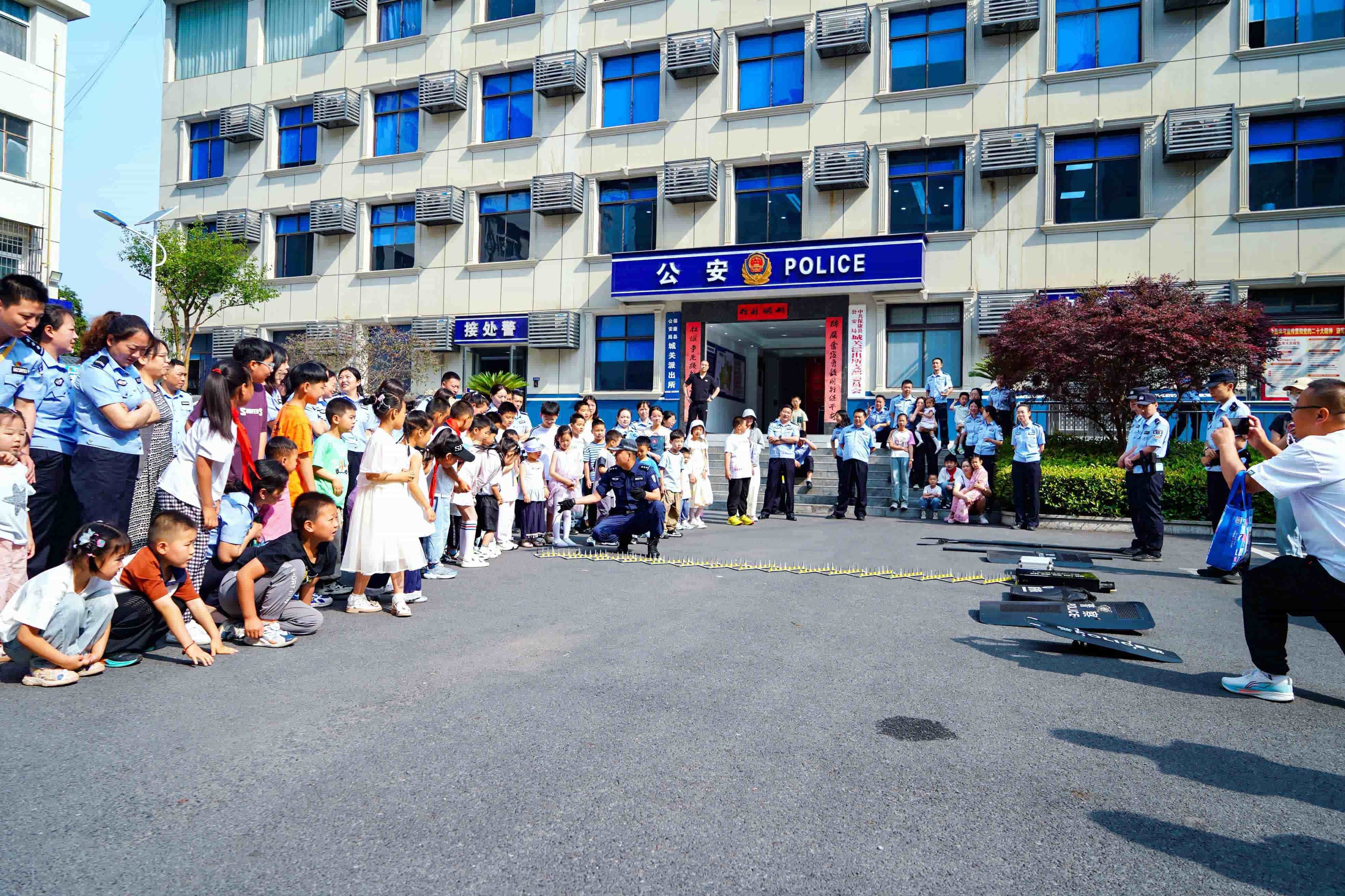 首站,警娃们走进城关派出所。“一二三四!”随着震耳欲聋的番号声,民警们首先进行了防暴安全演练,让孩子们学会自我保护意识。警犬表演环节,警犬训导员带着警犬展示了搜毒搜爆科目演练,让小朋友们大开眼界、惊叹不已。接着,警娃们在警察叔叔阿姨的带领下参观了派出所接处警大厅、警民之家、荣誉室、综合指挥室、执法办案区、警车等,让孩子们零距离走进爸爸妈妈的工作场所,感受人民警察的光荣与艰辛。