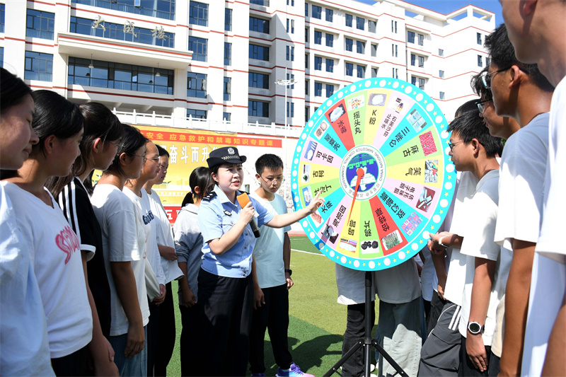 沉浸体验,坚定拒毒决心。“我的头好晕,连路都走不稳了!”“毒品会影响人的大脑,我们一定要坚决远离毒品!”在“吸毒模拟体验”环节,同学们佩戴特制眩晕眼镜,在民警的搀扶下尝试走完了“S”形路线,将禁毒知识从抽象概念转化为可感可知的体验。
