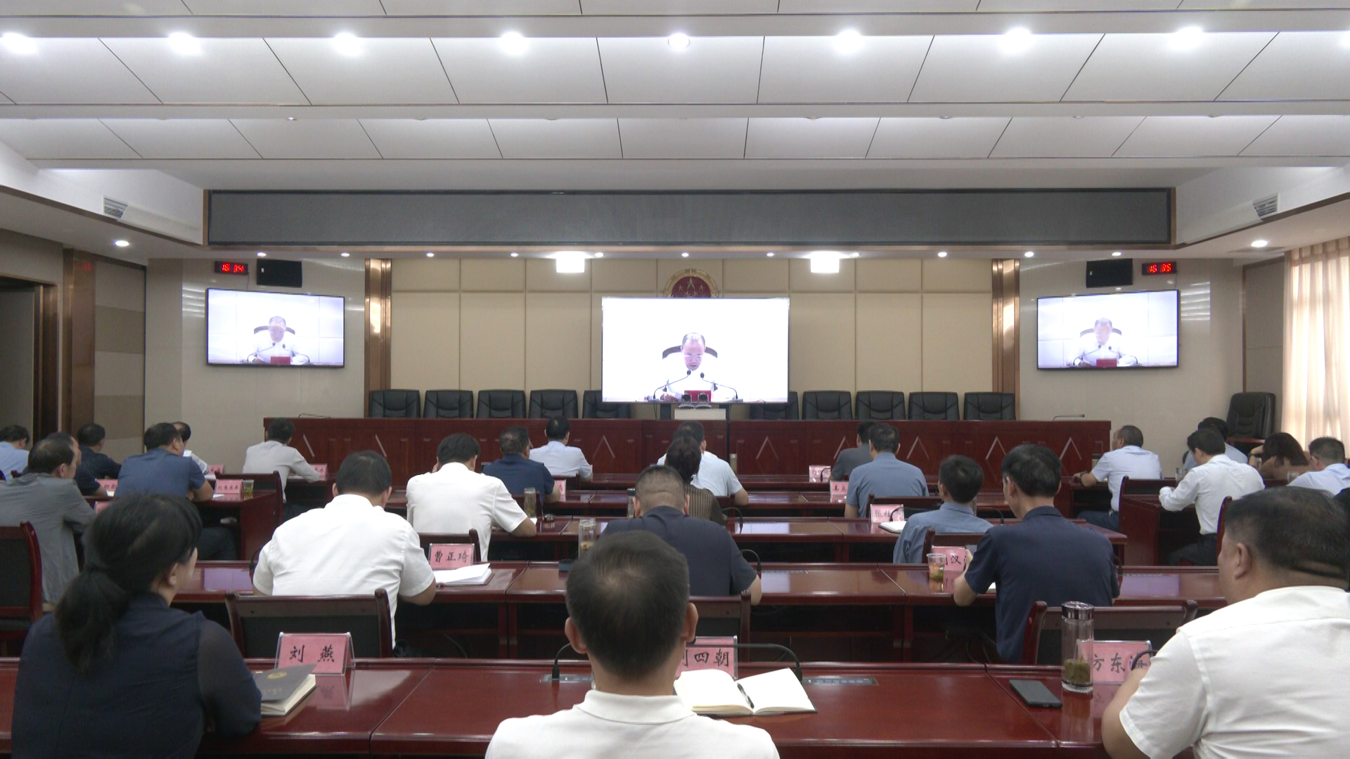 刘伟波、王畅等县“四大家”领导在保康分会场参加会议。