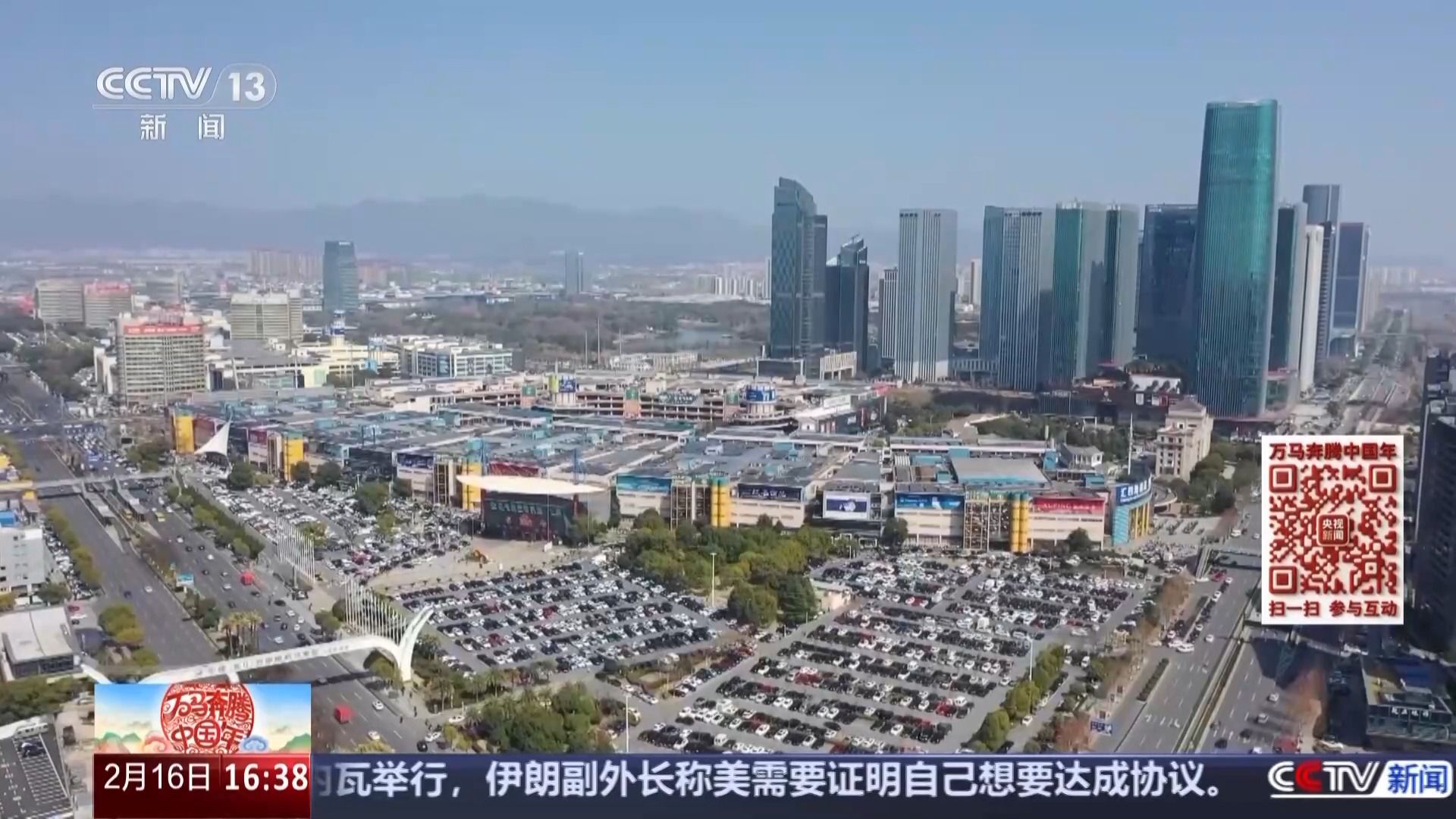 总台记者 夏周:这里就是总台马年春晚义乌分会场的主舞台。它是直接设置在了义乌全球数贸中心,这个被当地人称为“第六代市场”的中庭广场里。从“马路市场”到“世界超市”,再到“数链全球”,演员们站在舞台上,新一代的市场就在近在咫尺,而舞台的整体设计也融入了义乌和浙江元素。