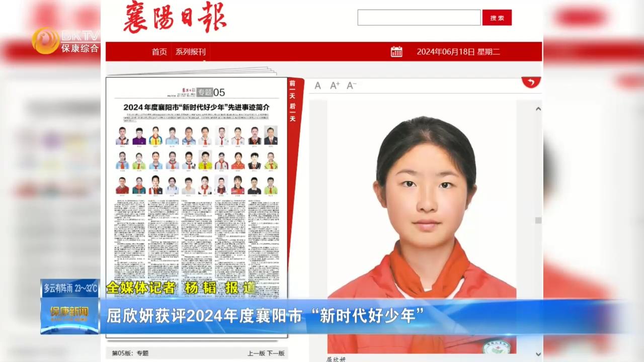 屈欣妍获评2024年度襄阳市“新时代好少年”