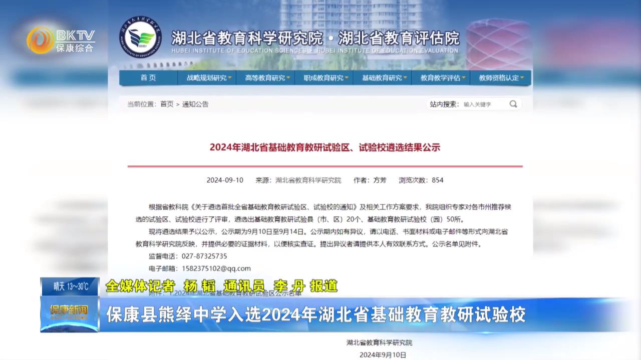保康县熊绎中学入选2024年湖北省基础教育教研试验...