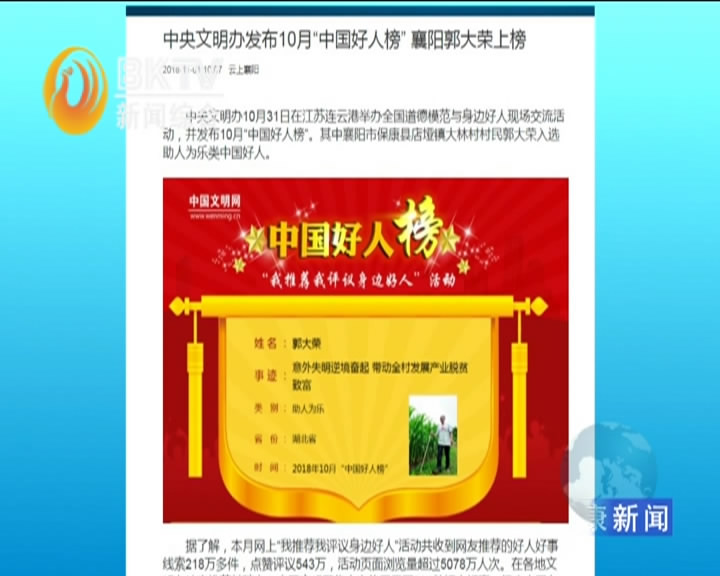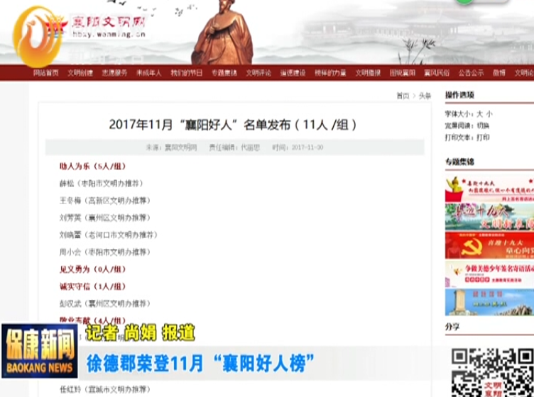 徐德郡荣登11月“襄阳好人榜”