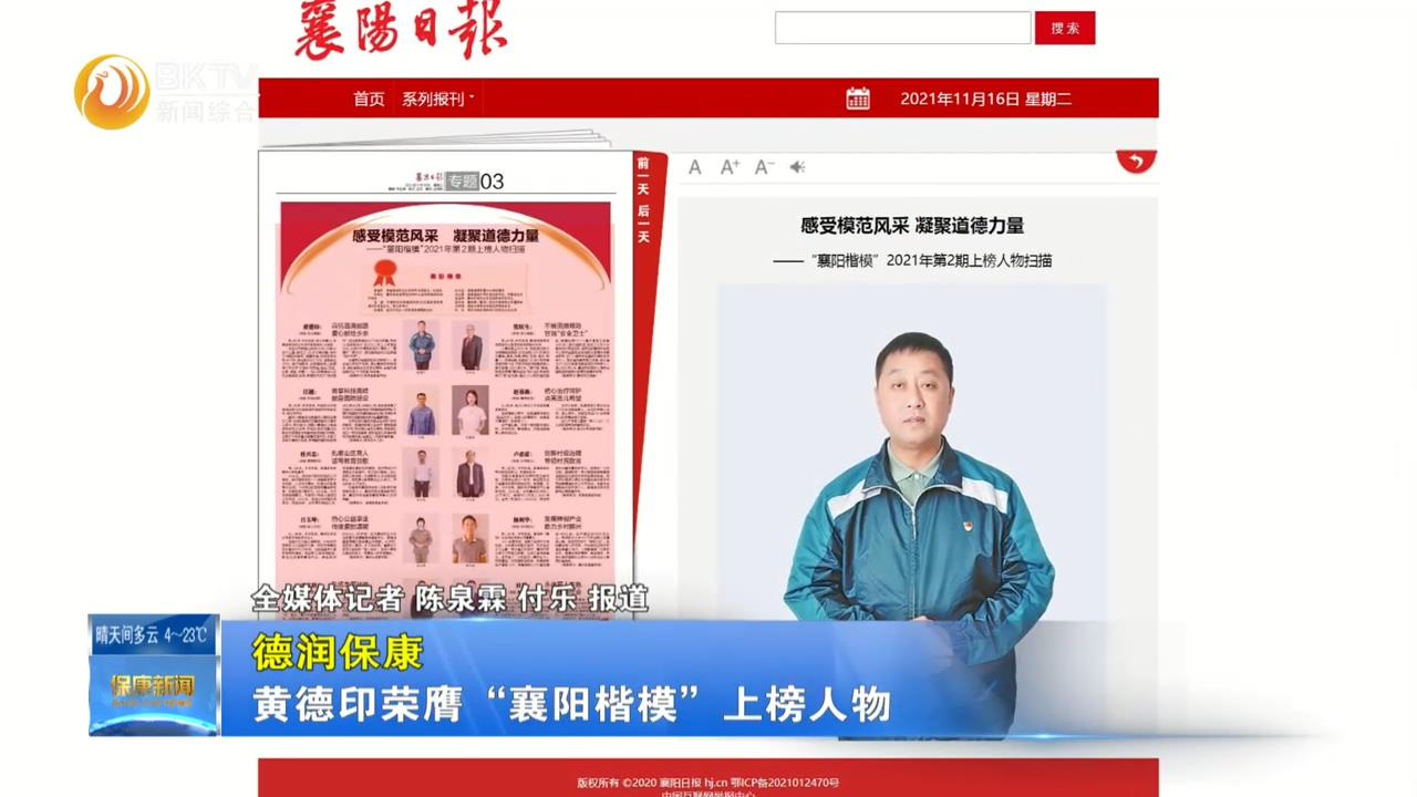 【德润保康】黄德印荣膺“襄阳楷模”上榜人物