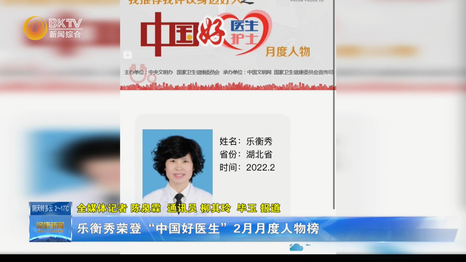 乐衡秀荣登“中国好医生”2月月度人物榜