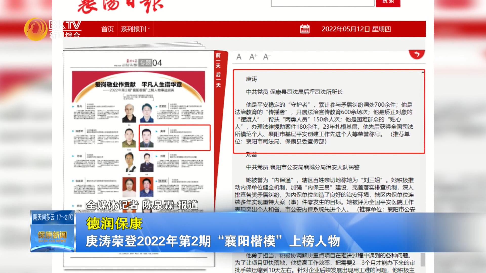 【德润保康】庚涛荣登2022年第2期“襄阳楷模”上榜...