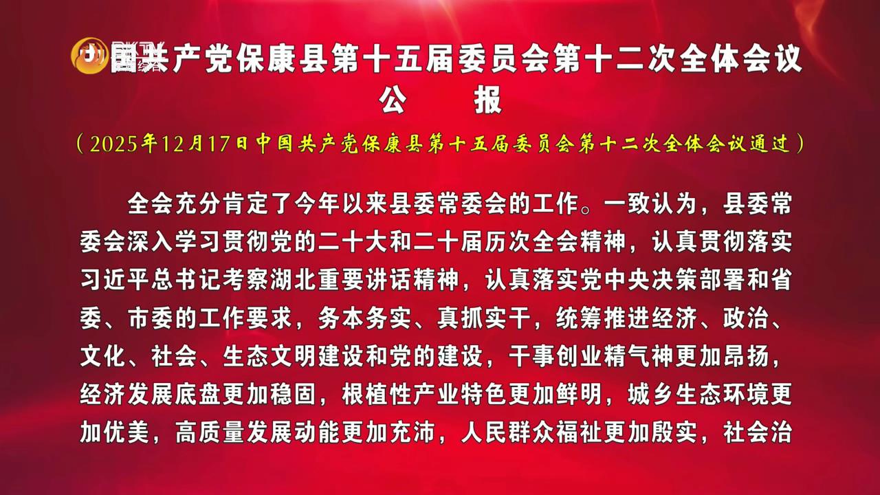 中共保康县委十五届十二次全体会议举行 坚定信心...