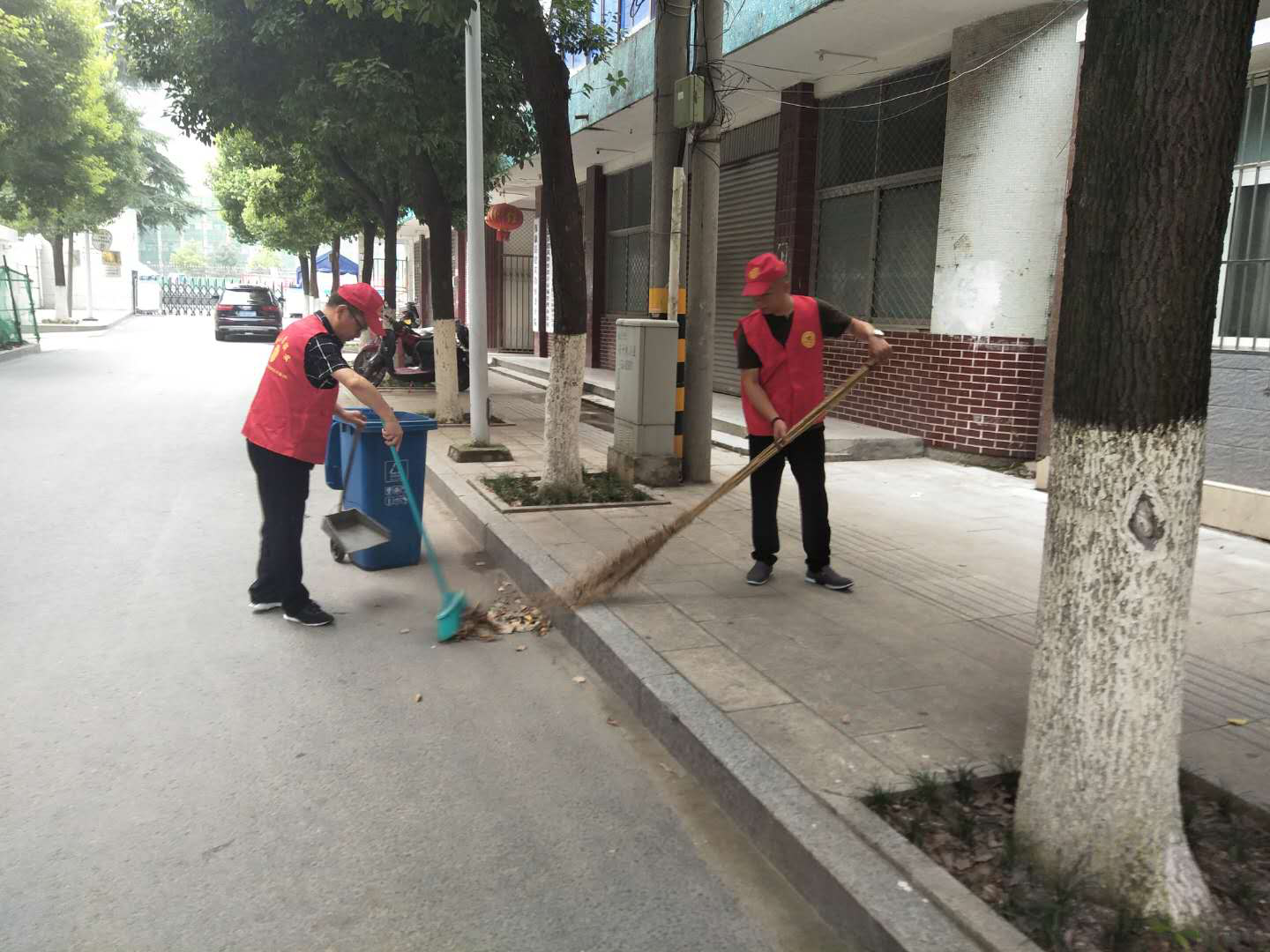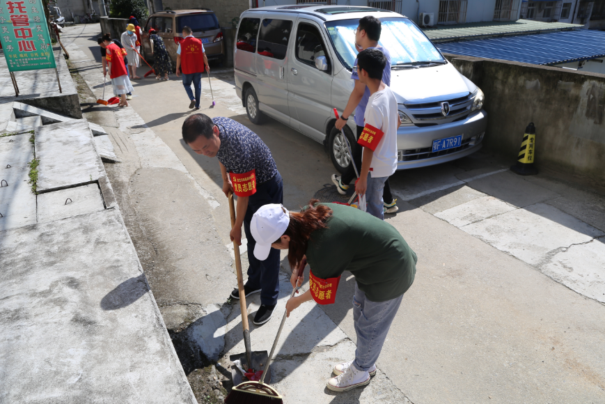 8月14日下午,县人社局新时代文明实践志愿服务支队联合新街社区夹堤网格“双报到”党支部在夹堤南北巷开展美化家园志愿服务活动,共同创建干净整洁的美好家园。志愿者们穿着红