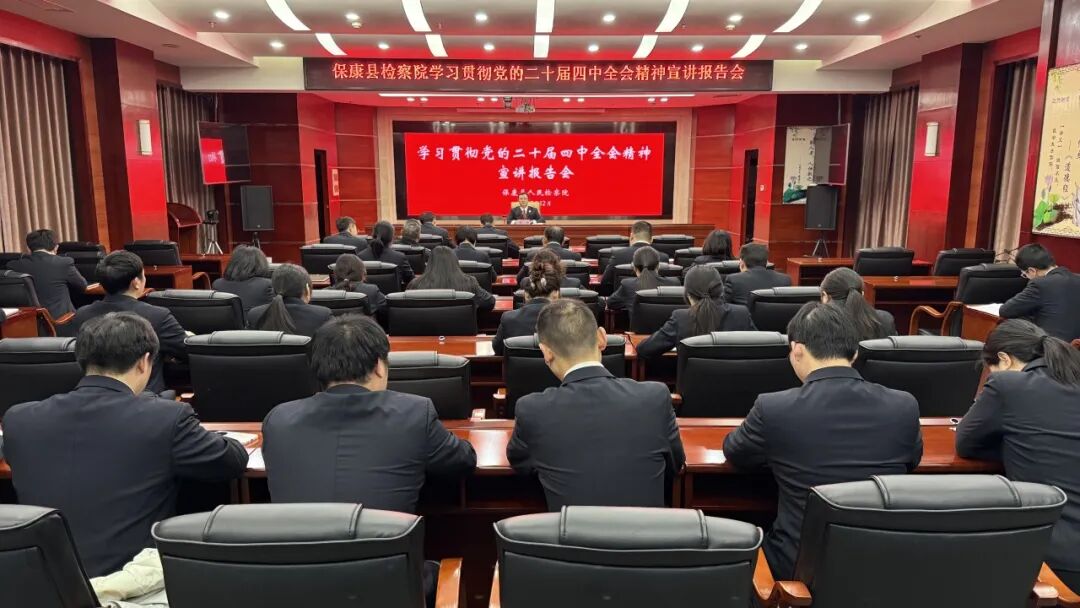 湖北日报客户端讯(通讯员王楠)为深入学习贯彻党的二十届四中全会精神,切实将全会部署要求贯彻落实到检察工作全过程各方面,12月11日下午,保康县检察院举行学习贯彻党的二十届四中全会精神宣讲报告会,院领导王涛作专题宣讲报告,全体干警参加会议。